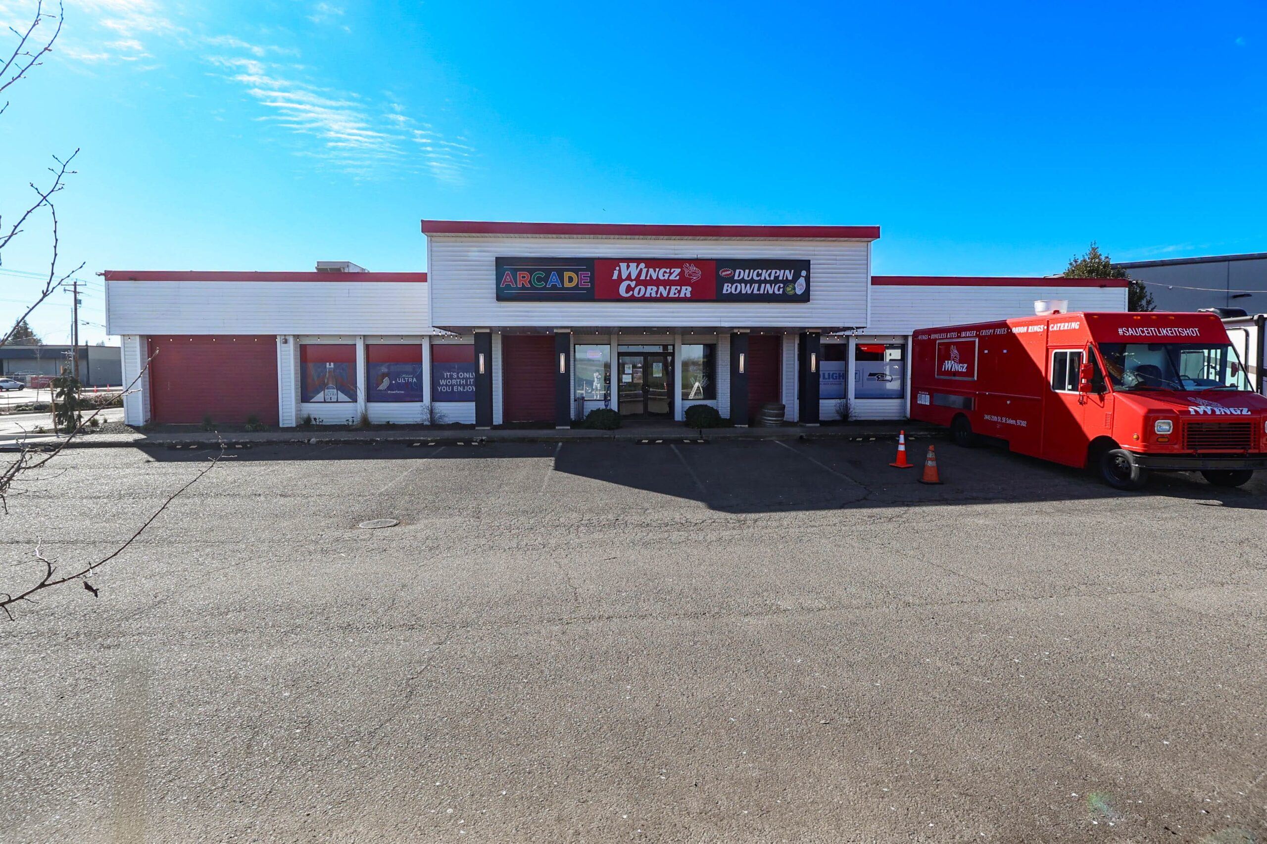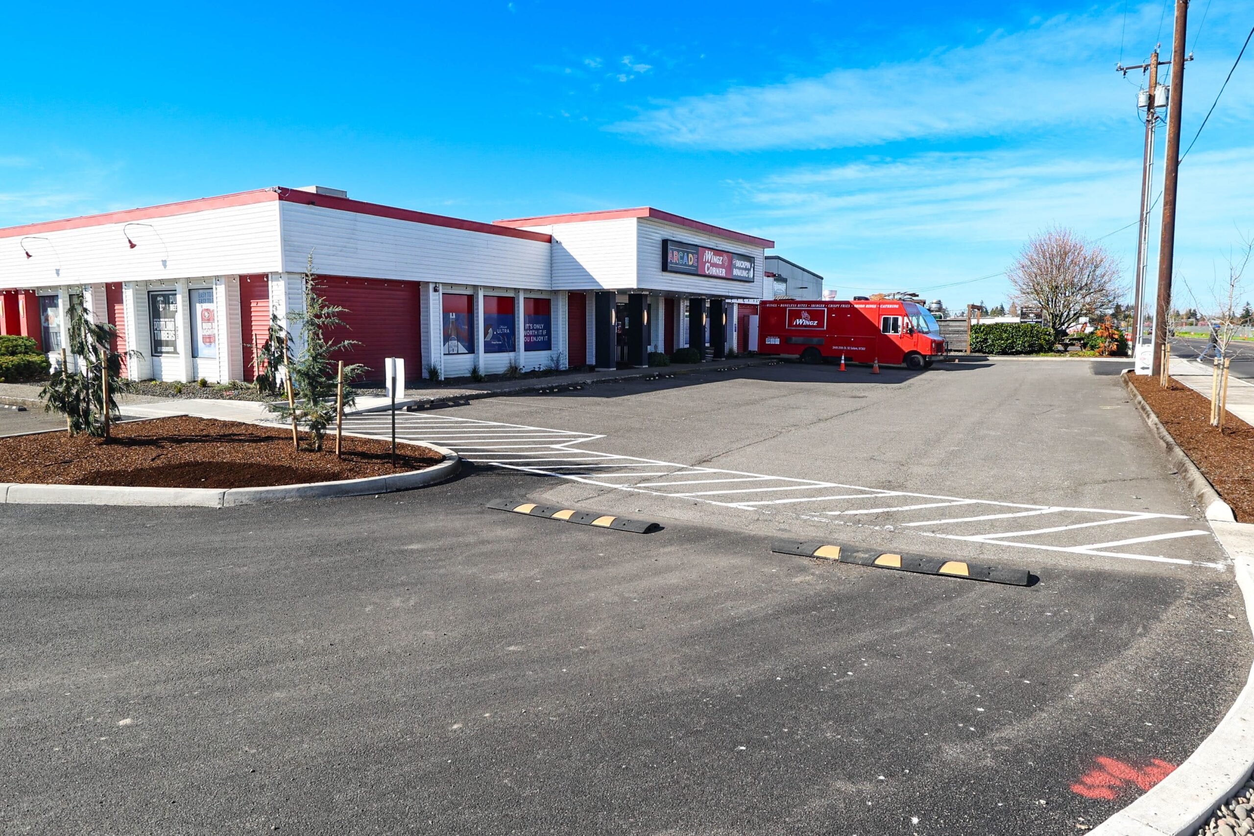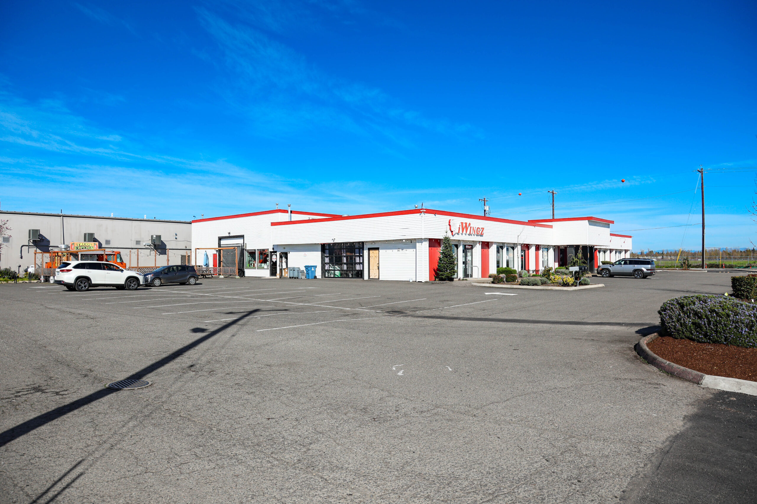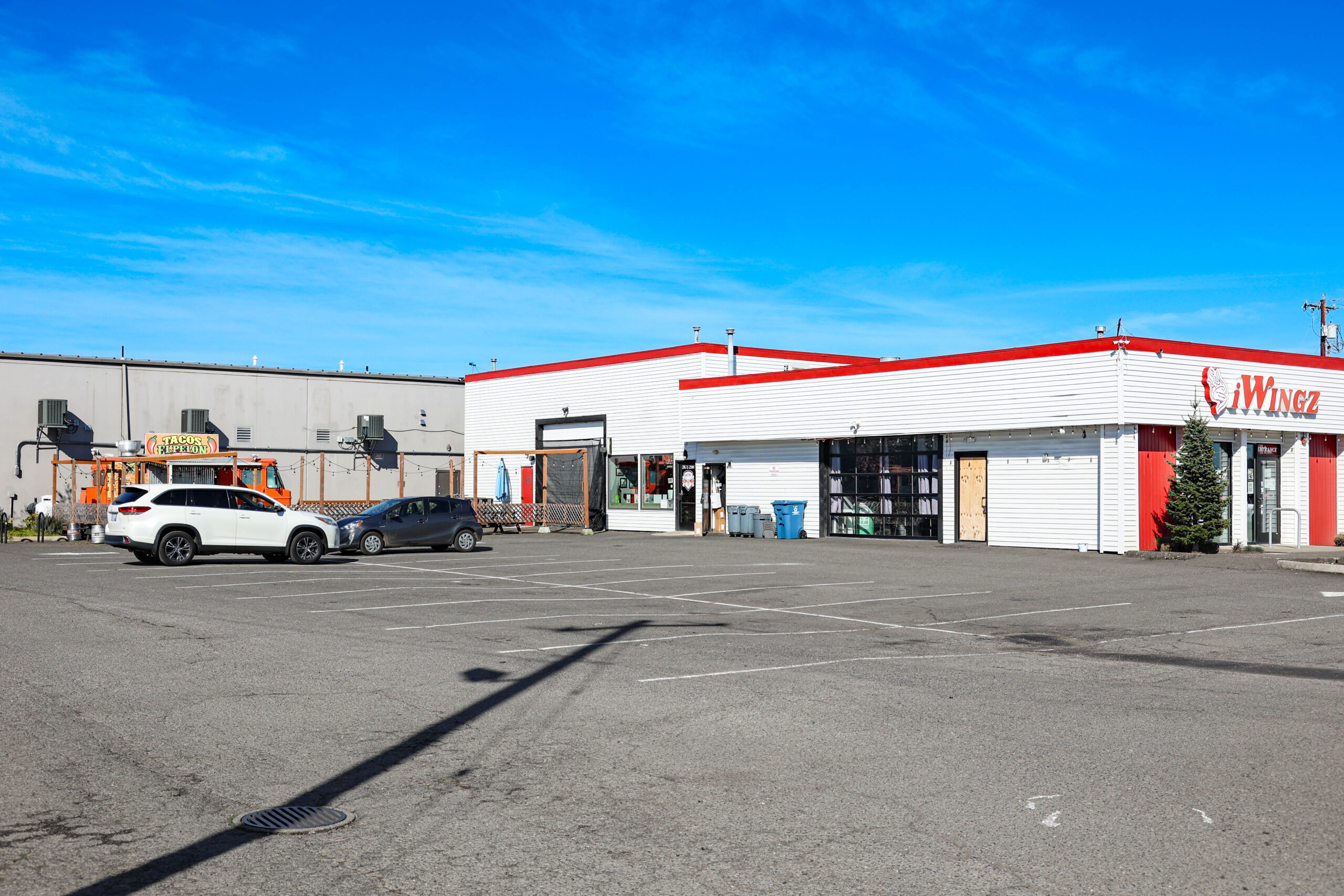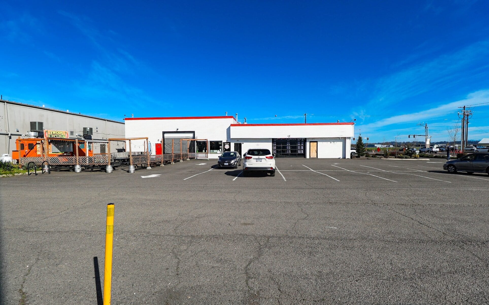 Current Configuration: Demised for two primary interior tenants (a brewery and a restaurant/arcade) with high-value infrastructure including commercial kitchen build-outs, roll-up doors, and heavy power, plus a dedicated pad for a food truck operator.